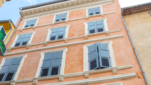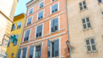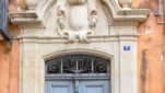 C’est un immeuble qui aurait pu être érigé à Rome, au cœur du Trastevere. Nous sommes à Grasse, face à la place aux Herbes, dans le secteur sauvegardé. Au pied de l’élégante façade orangée, légèrement cuivrée, une imposante porte d’entrée en bois, à double ventail. Elle est surmontée d’un entablement en pierre calcaire, d’un blason et d’un fronton courbe mouluré. De part et d’autre, des piliers toscans. L’influence italienne encore.