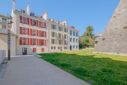 Un édifice majestueux du XIXe siècle, au pied de l’éperon rocheux dominé par le Château de Pau, dans le quartier de la Monnaie, a retrouvé ses couleurs vives ainsi que ses modénatures marquées : chaînes d’angle, encadrements de baies en pierres de taille, corniches moulurées en bois, fenêtres à grands carreaux, petits bois et volets battants persiennés. Des lucarnes rythment les toitures en ardoise ou en tuile mécanique. À l’intérieur, de vastes escaliers desservent les différents niveaux. Les halls d’entrée, dallés d’anciens carreaux de ciment et habillés de lambris déclinent les décors XIXe des immeubles palois.